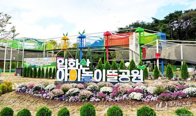 입화산 아이놀이뜰 공원은 면적 760㎡, 높이 10m에 달하는 울산 최대 규모의 그물 모험 놀이시설을 갖추고 있다.