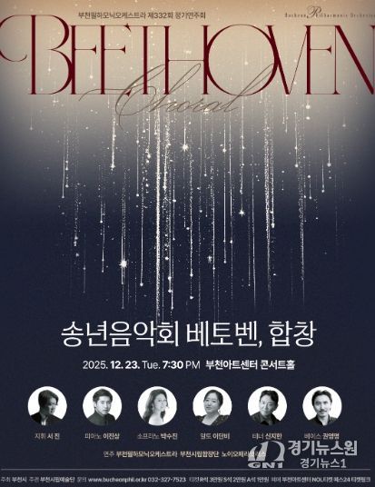 [경기뉴스원/경기뉴스1] | 부천필하모닉오케스트라가 오는 12월 23일 오후 7시 30분 부천아트센터 콘서트홀에서 제332회 정기연주회 송년음악회 ‘베토벤, 합창’을 개최한다. 이번 송년음악회는 부천필이 2015년부터 매년 선보여온 프로그램인 베토벤 '교향곡 제9번 ‘합창’'과 함께, 모차르트 '피아노 협주곡 제12번'이 연주된다. 공연에는 지휘자 서진과 부천필이 무대에 오르며, 소프라노 박수진, 메조소프라노 이단비, 테너 신지한, 베이스 권영명이 협연하며 부천시립합창단과 노이오페라코러스가 연주로 함께 무대를 꾸민다.