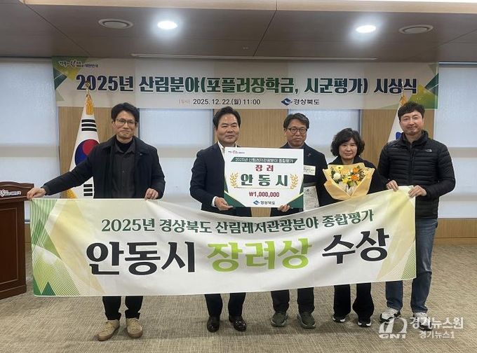 [경기뉴스원/경기뉴스1] | 안동시는 경상북도 주관 12월 22일 ‘2025년 산림레저관광분야 종합평가’에서 장려상을 수상했다고 밝혔다.