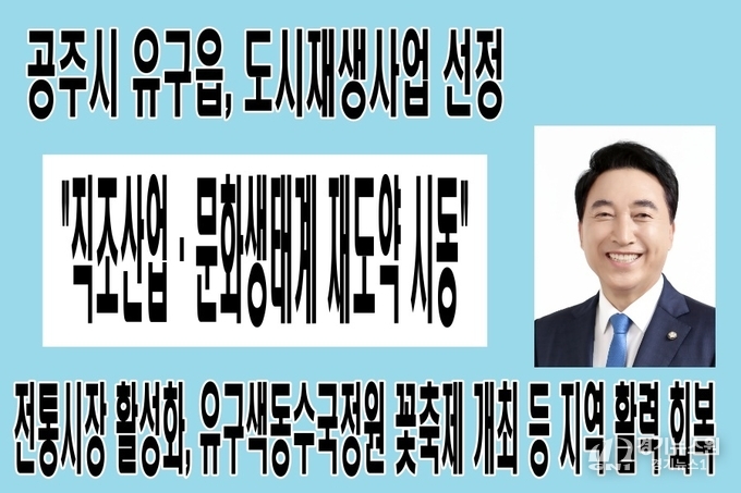 【공주=경기뉴스원/경기뉴스1】 | 공주시 유구읍이 국토교통부 2025년 하반기 도시재생사업(지역특화 부문)에 선정되며, 침체됐던 지역에 새로운 성장 동력을 확보했다. 이번 선정으로 유구읍은 2026년부터 2029년까지 총 250억 원 규모의 도시재생사업을 추진하게 된다.