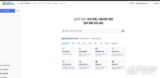 [경기뉴스원/경기뉴스1] | 세종특별자치시시설관리공단은 챗GPT, 제미나이 등 다양한 생성형 인공지능 프로그램을 하나의 환경에서 활용할 수 있는 인공지능 통합 플랫폼을 도입해 지능형 업무 환경 구축에 나선다고 밝혔다.