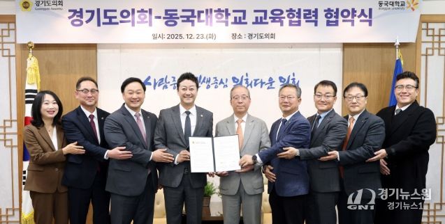 [경기뉴스원/경기뉴스1] | 경기도의회는 23일 오전 의장 접견실에서 동국대학교와 교육협력 및 학술교류를 위한 업무협약(MOU)을 체결했다.