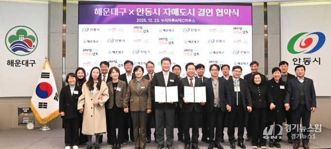 [경기뉴스원/경기뉴스1] | 해운대구는 12월 23일, 부산 누리마루 APEC하우스에서 경상북도 안동시(시장 권기창)와 자매결연 협약을 체결했다.