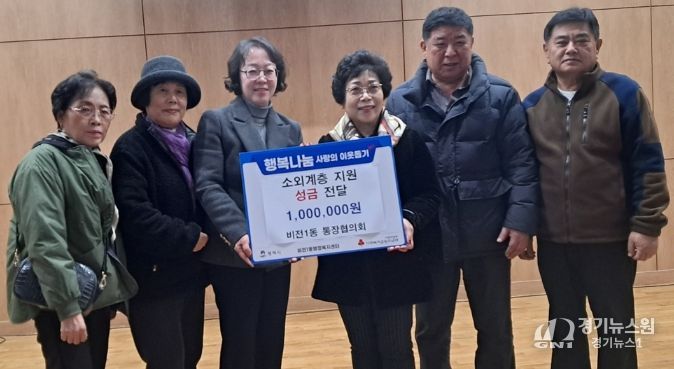 [경기뉴스원/경기뉴스1] | 평택시 비전1동 통장협의회는 지난 17일, 연말을 맞아 관내 어려운 이웃을 위해 써달라며 이웃돕기 성금 100만 원을 비전1동 행정복지센터에 기부했다.