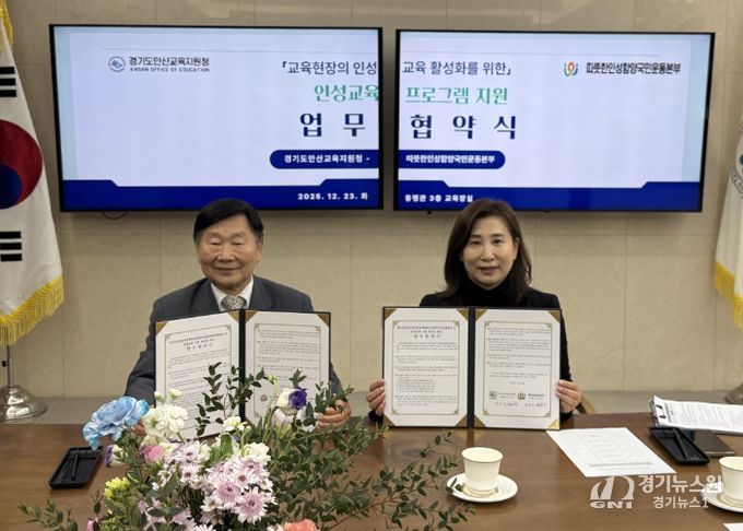 [경기뉴스원/경기뉴스1] | 경기도안산교육지원청은 12월 23일 오후 3시 30분, 따뜻한인성함양국민운동본부와 학교 현장의 인성교육 강화와 도덕성 회복을 위한 지역 연계형 인성교육 지원 체계 구축을 위한 업무협약(MOU)을 체결했다.