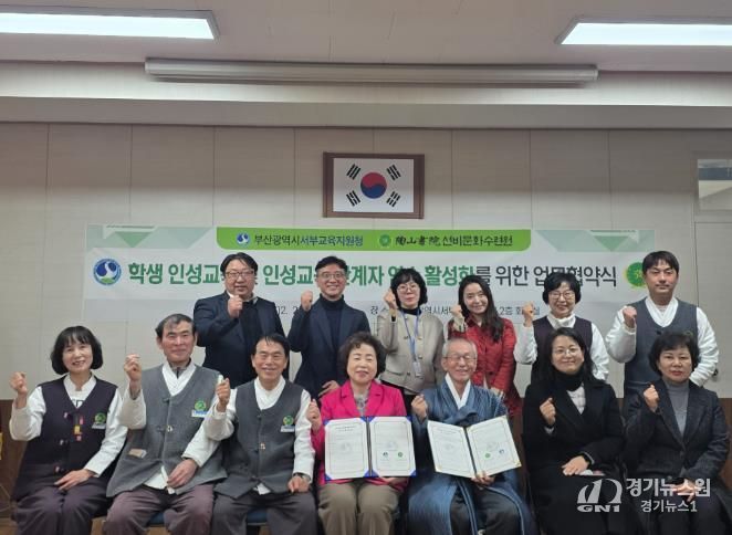 [경기뉴스원/경기뉴스1] | 부산광역시서부교육지원청은 지난 24일 오후 서부교육지원청에서 경북 안동시 도산서원 선비문화수련원과 ‘전통문화체험기관 연계 인성교육 프로그램’을 위한 업무협약을 체결했다고 밝혔다.