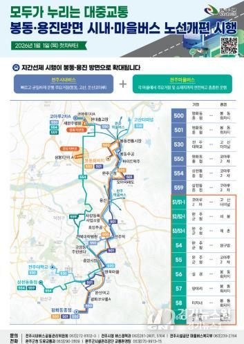 유희태 완주군수는 “봉동·용진 지역에 마을버스가 본격 도입되면서 친절도 향상과 맞춤형 시간표 운영, 정시성 확보, 교통비 절감 등 다양한 긍정적 효과가 나타날 것”이라며, “앞으로도 군민들의 대중교통 이용 편의를 높이기 위해 지속적으로 개선해 나가겠다”고 말했다.