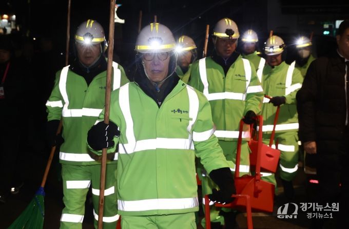 [경기뉴스원/경기뉴스1] | 김민석 국무총리는 12월 26일 6시 30분경, 서울특별시 관악구 서원동 환경공무관 업무공간을 방문해 직접 거리를 청소하고 담소를 나누며 격려하는 시간을 가졌다.