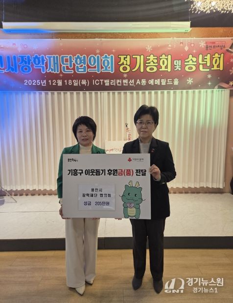 용인시장학재단협의회(대표 유미경)는 18일 연말 송년회를 진행하면서 기흥구에 이웃돕기 성금 205만원을 전달했다.