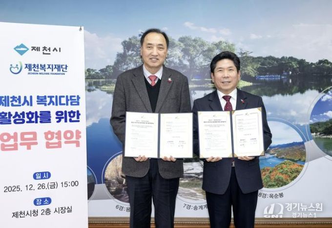 [경기뉴스원/경기뉴스1] | 제천시는 지난 26일 제천복지재단과 제천시 장애인 맞춤형 홈페이지‘복지다담’활성화를 위한 업무협약을 체결했다.