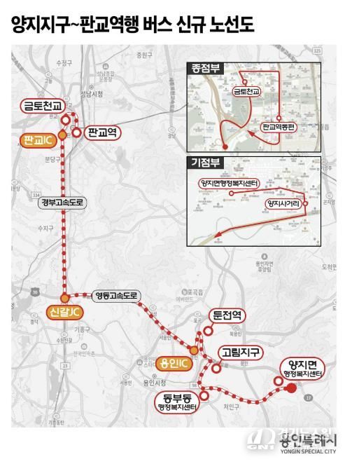 [경기뉴스원/경기뉴스1] | 용인 양지지구를 출발해 고림동과 둔전역을 거쳐 성남 판교역까지 운행하는 버스 노선이 확정됐다.