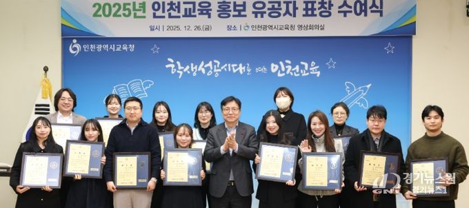 [경기뉴스원/경기뉴스1] | 인천광역시교육청은 한 해 동안 인천교육 현장의 생생한 모습을 홍보한 유공자들의 노고를 격려하는‘2025년 인천교육 홍보 유공자 표창 수여식’을 26일 개최했다.