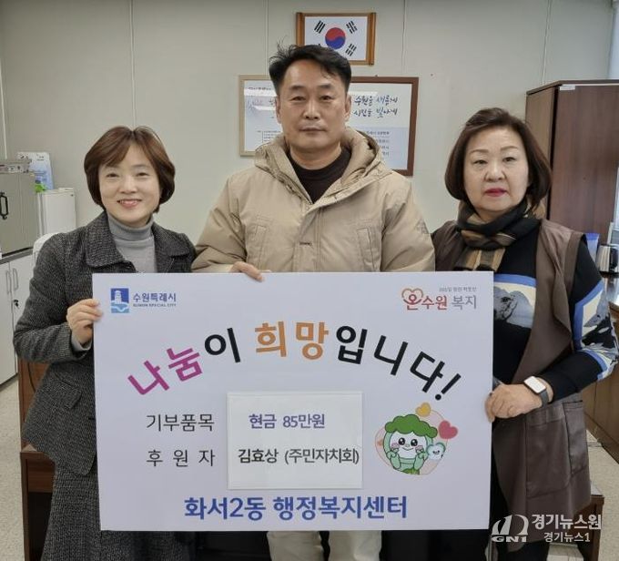 김효상 대표는 화서2동 주민자치회 문화복지분과장으로 활동하며, 평소 지역 주민의 복지 증진과 공동체 활성화를 위한 다양한 사업과 활동에 적극 참여해 왔다. 연말을 맞아 이웃을 위한 나눔을 직접 실천하고자 이번 성금 기부를 결정했으며, 특히 주민자치회 구성원으로서 지역사회에 대한 책임과 연대의 가치를 몸소 실천했다는 점에서 의미가 크다.