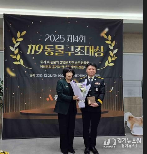[경기뉴스원/경기뉴스1] | 전남소방본부는 순천소방서 119구조대 소속 양달승 소방위가 동물구조 활동에 기여한 공로를 인정받아 ‘2025년 12월 119동물구조대상’을 수상했다고 밝혔다.