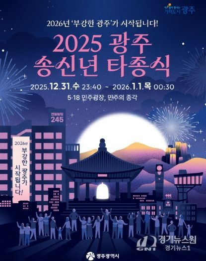 행사에는 강기정 시장을 비롯한 2025년 한 해 광주를 빛낸 시민대표 18명으로 구성된 타종 인사와 시민 등 3000여명이 참석할 예정이다.