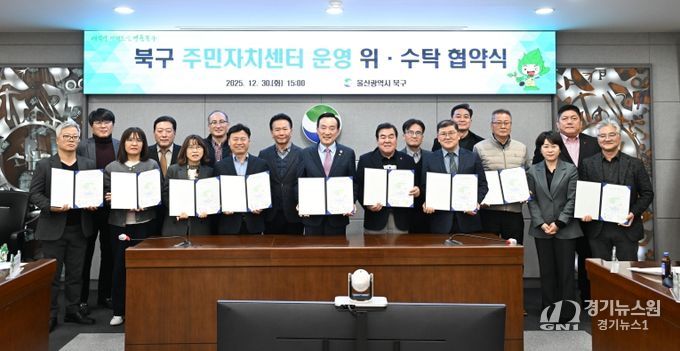 [경기뉴스원/경기뉴스1] | 울산 북구는 30일 구청 상황실에서 8개 동 주민자치회와 주민자치센터 운영 위·수탁 협약을 체결했다.