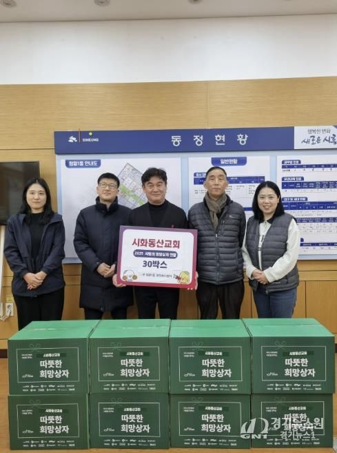[경기뉴스원/경기뉴스1] | 시흥시 정왕1동 행정복지센터에 지난 12월 30일 시화동산교회가 방문해 관내 어려운 이웃을 돕기 위해 ‘희망상자’ 30개를 전달했다.