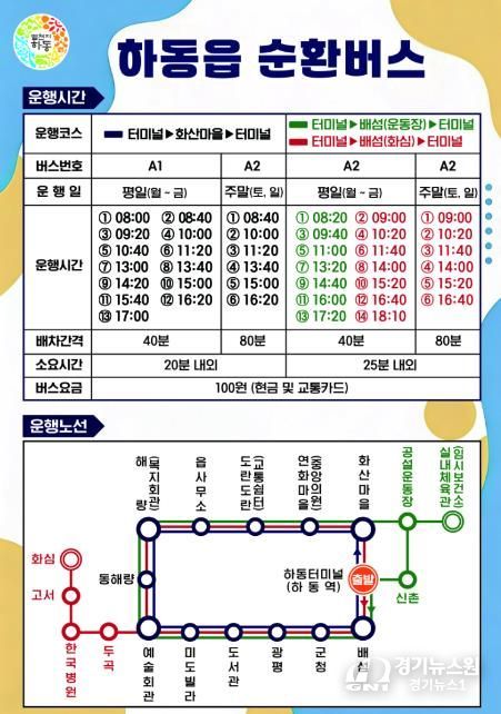 [경기뉴스원/경기뉴스1] | 하동군은 군민의 이동 편의성을 높이고, 대중교통 접근성을 강화하기 위해 오는 2026년 1월 1일부터 하동읍 순환버스를 대폭 확대 운행한다고 밝혔다.