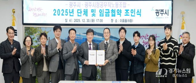 [경기뉴스원/경기뉴스1] | 광주시는 지난 30일 시청 이음홀에서 광주시청 공무직노동조합과 2025년도 단체 및 임금협약을 체결했다.