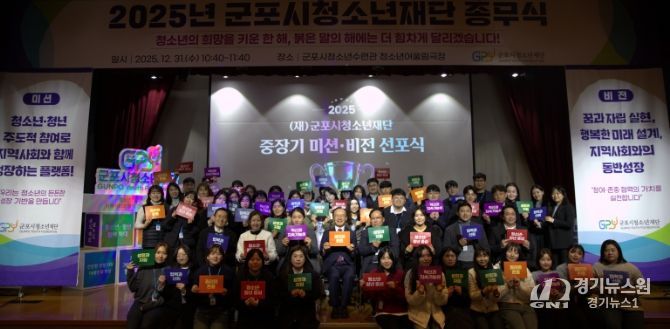 [경기뉴스원/경기뉴스1] | 군포시청소년재단은 2025년 한 해를 마무리하고 새로운 도약을 다짐하기 위해 '2025년 미션·비전 선포식'을 개최했다.