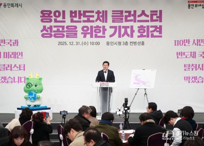[경기뉴스원/경기뉴스1] | 이상일 용인특례시장은 31일 시청 컨벤션홀에서 열린 긴급 기자회견에서 반도체 메가 클러스터 조성을 방해하려는 일부 지역, 일부 여권의 정치인과 일부 행정부 인사의 움직임과 관련해 대통령이나 국무총리가 정부 차원의 공식적인 입장 발표를 통해 논란과 혼란을 종식시켜 줄 것을 요구했다.