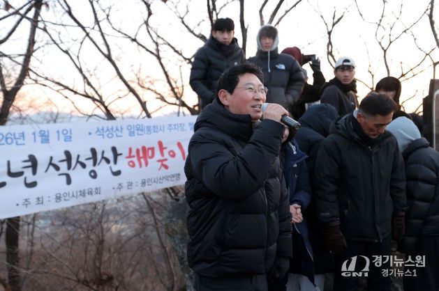 [경기뉴스원/경기뉴스1] | 이상일 용인특례시장은 1월 1일 새해를 맞아 일출(日出)로 유명한 석성산에 올라 시민 2000여 명과 함께 해맞이를 하고 덕담을 주고 받았다.