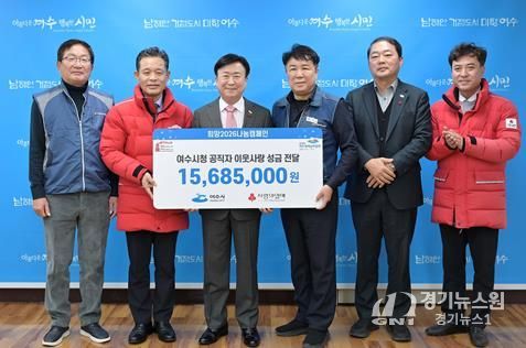 [경기뉴스원/경기뉴스1] | 여수시는 지난 12월 31일 시 직원들이 '희망2026나눔캠페인'에 성금 1,568만 5천 원을 전달했다고 밝혔다.