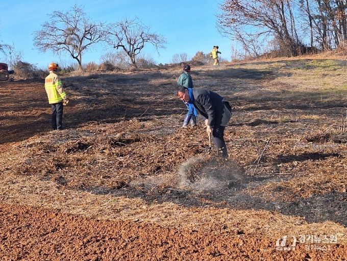 [경기뉴스원/경기뉴스1] | 완주군의회 이주갑 자치행정위원장이 지난달 31일 연말 종무식 일정 중 발생한 산불 현장을 발견하고, 즉각적인 신고와 함께 119대원, 주민들과 협력해 직접 진화 작업에 나서며 신속한 초기 대응으로 피해 확산을 막았다.