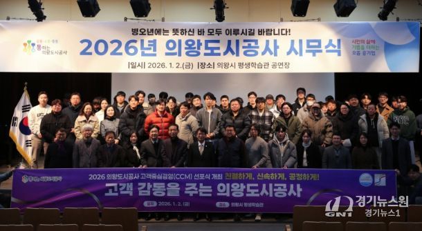 [경기뉴스원/경기뉴스1] | 의왕도시공사가 1월 2일 의왕시 평생학습관 3층 공연장에서 고객중심경영(CCM)을 실천하기 위한 선포식을 개최했다.