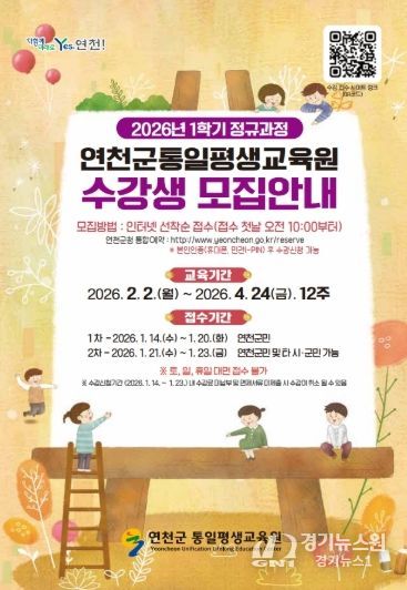 [경기뉴스원/경기뉴스1] | 연천군은 군민의 평생학습 참여 기회를 확대하기 위해 2026년 1학기 평생교육 정규과정 수강생을 모집한다고 밝혔다.