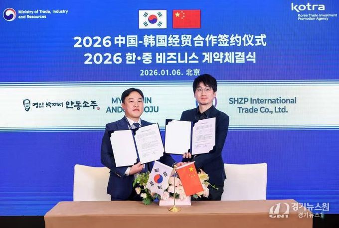 [경기뉴스원/경기뉴스1] | 안동시는 대한민국 전통 증류주인 안동소주가 2026 한․중 비즈니스 파트너십 행사에서 중국 유력 주류 유통사와 미화 140만 달러(한화 20억 원) 규모의 수출 계약을 체결했다고 1월 7일 밝혔다.