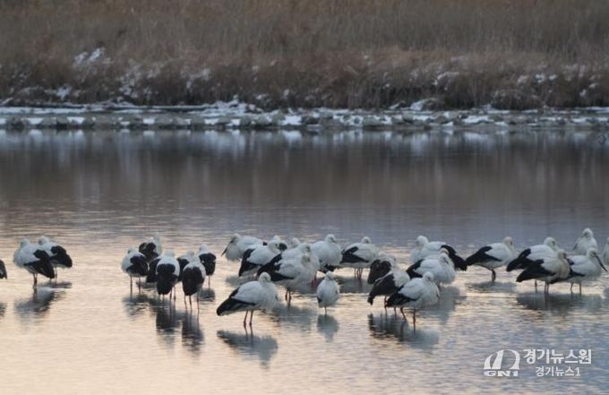 [경기뉴스원/경기뉴스1] | 고창군이 해리천 일원에서 환경부 멸종위기종 1급이자 천연기념물인 황새 무리가 역대 최대 규모인 80여 마리나 월동 중인 것으로 확인됐다고 9일 밝혔다.