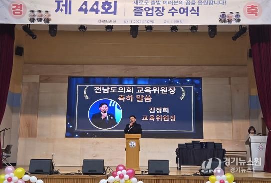 [경기뉴스원/경기뉴스1] | 김정희 전남도의회 교육위원장은 1월 9일, 순천효산고등학교에서 열린 제44회 졸업식에 참석해 졸업생들을 격려하며 따뜻한 축사를 전했다.