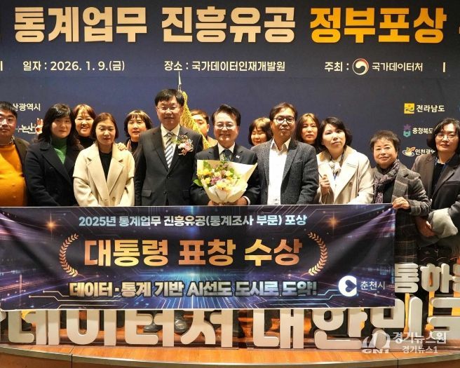 [경기뉴스원/경기뉴스1] | 춘천시가 9일 2025년 통계업무 유공을 인정받아 강원특별자치도 18개 시군 중 최초로 대통령 표창을 수상했다.