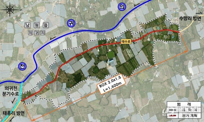 특히, 의귀1 재해위험개선지구 정비사업은 집중호우시 우수가 의귀천으로 유입되지 못해 태수로 주변 주거지와 농경지 저지대의 침수피해가 빈번하게 발생하는 곳으로 2028년까지 준공을 목표로 하고 있으며, 사업완료 시 263ha의 침수위험지역이 해소될 전망이다.