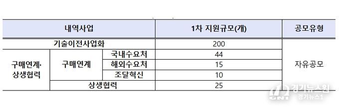 [경기뉴스원/경기뉴스1] | 중소벤처기업부는 중소기업의 기술사업화 촉진을 위한 「2026년 민관공동기술사업화(R&D) 1차 시행계획」을 12일(월) 공고하고, 1월 29일(목)부터 2월 12일(목(까지 참여 기업을 모집한다고 밝혔다.