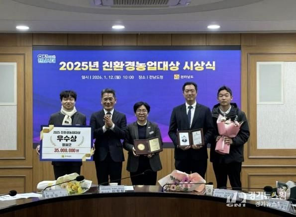 [경기뉴스원/경기뉴스1] | 영암군이 12일 전라남도의 ‘2025년 친환경농업대상 시상식’에서 우수상과 함께 상사업비 3,500만원, 포상금 150만원을 받았다.