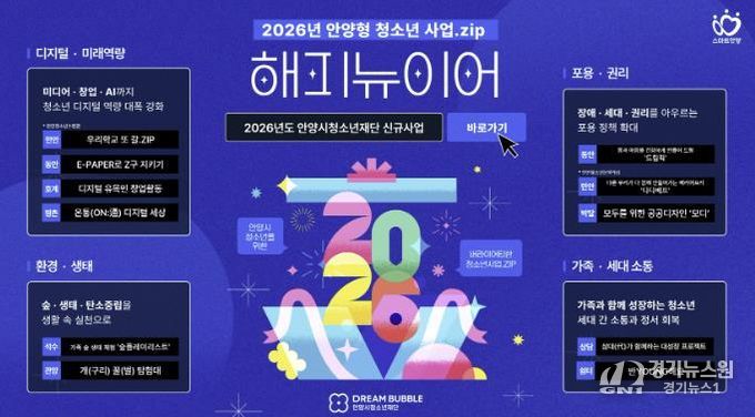 [경기뉴스원/경기뉴스1] | 안양시청소년재단은 2026년을 맞아 ‘청소년이 주도하는 변화의 물결, 모두가 함께하는 지속 가능한 미래’라는 비전 아래 10개 소속 기관을 주축으로 신규사업을 본격 추진한다.