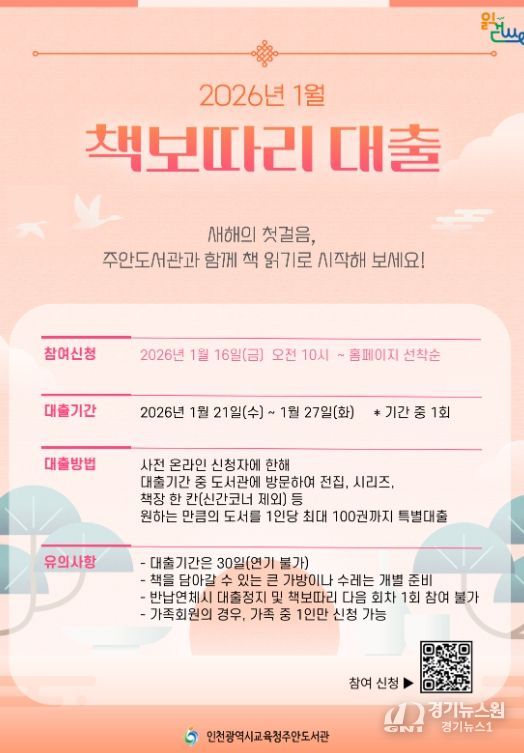 [경기뉴스원/경기뉴스1] | 인천광역시교육청주안도서관은 지역주민의 독서문화 정착과 대출 활성화를 위하여 2025년에 이어 올해도 '책 보따리 대출'을 실시한다고 14일 밝혔다.