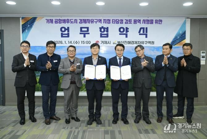 [경기뉴스원/경기뉴스1] | 거제시는 14일, 부산진해경제자유구역청(청장 박성호)과 경제자유구역 거제 확대를 위한 협력체계 구축 및 타당성 검토 용역 공동 추진을 위한 협약을 체결했다.