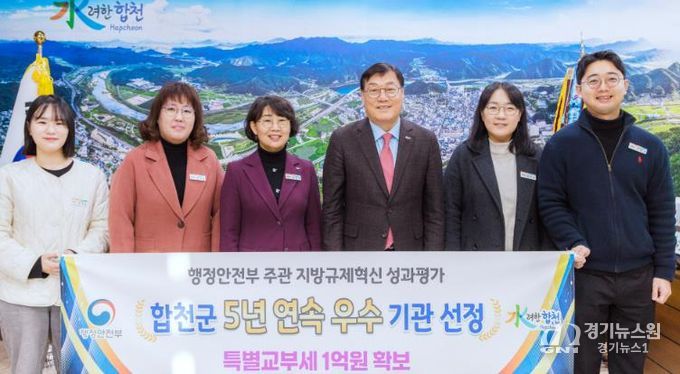 [경기뉴스원/경기뉴스1] | 합천군은 행정안전부가 주관하는 ‘2025년 지방규제혁신 추진 성과평가’에서 우수기관으로 선정, 특별교부세 1억원 확보하는 쾌거를 달성했다고 15일 밝혔다.
