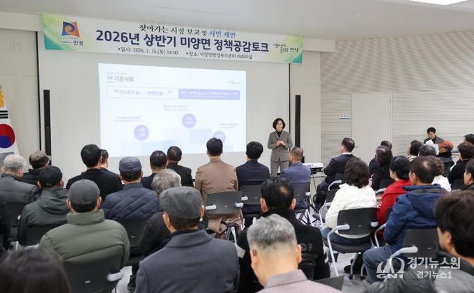 [경기뉴스원/경기뉴스1] | 안성시 미양면은 지난 1월 15일, 미양면행정복지센터 대회의실에서 주민 120여 명이 참석한 가운데 ‘2026년 상반기 미양면 정책공감토크’를 성황리에 개최했다.