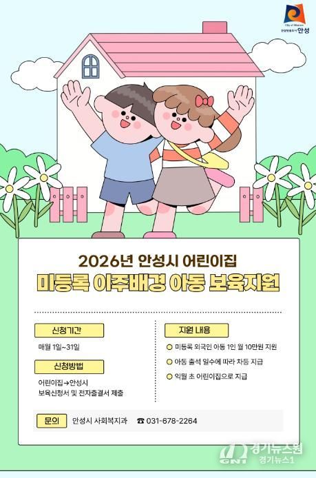 [경기뉴스원/경기뉴스1] | 안성시는 2026년부터 어린이집에 다니는 미등록 외국인(이주배경) 영유아에게 월 10만원의 보육지원금을 지원한다고 밝혔다.