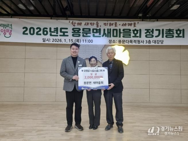 [경기뉴스원/경기뉴스1] | 양평군 용문면은 지난 15일 용문면새마을회가 새해를 맞아 지역 내 어려운 이웃을 돕기 위한 성금 200만 원을 기탁하며 따뜻한 나눔을 실천했다고 밝혔다.