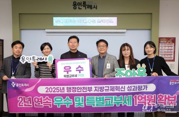 [경기뉴스원/경기뉴스1] | 용인특례시는 지난해에 이어 ‘지방규제혁신 성과평가’에서 우수 기관으로 선정돼 특별교부세 1억 원을 확보했다고 16일 밝혔다.