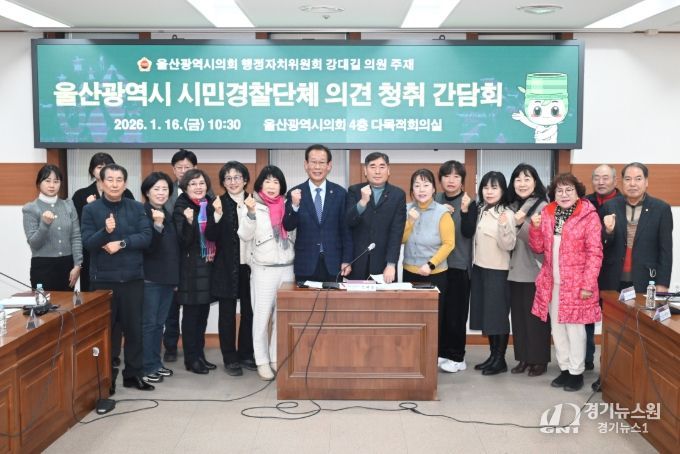 [경기뉴스원/경기뉴스1] | 울산시의회 강대길 의원은 16일 의회 4층 다목적회의실에서 주민, 시민경찰단체, 경찰위원회ㆍ경찰청 관계 부서 등과 함께 ‘울산광역시 시민경찰단체 의견 청취’ 간담회를 개최했다.