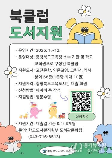 [경기뉴스원/경기뉴스1] | 충청북도교육청 직속기관 교육도서관은 1월부터 12월까지 도내 교직원의 지속적인 독서 활동을 장려하고 책 읽는 문화를 확산하기 위해 2026년 '공감하는 북클럽 도서 지원 사업'을 연중 상시 운영한다.