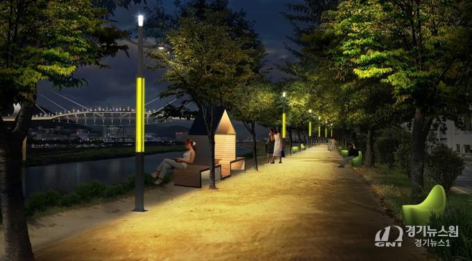 또 영대교에서부터 쌍벽루국민체육센터까지 둑마루길 800m구간에는 LED열주등 34개 경관조명 개선을 통해 기존산책로가 감성공간으로 탈바꿈하게 된다.