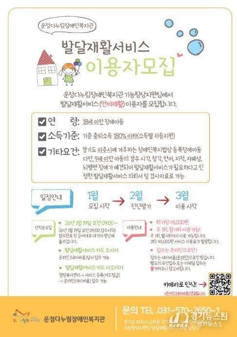 [경기뉴스원/경기뉴스1] | 파주시는 운정다누림장애인복지관을 통해 발달지연 및 장애로 언어재활치료가 필요한 아동을 위한 ‘발달재활서비스(언어재활)’를 지원한다고 밝혔다.