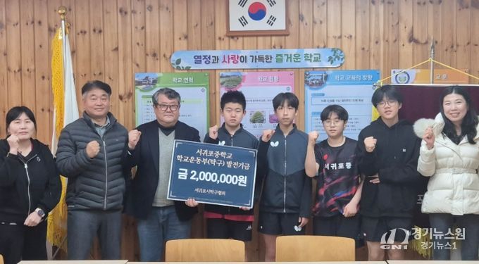 [경기뉴스원/경기뉴스1] | 제주도교육청 서귀포중학교는 15일 서귀포시탁구협회로부터 학교 탁구부 발전을 위한 기탁금 200만 원을 전달받았다고 밝혔다.